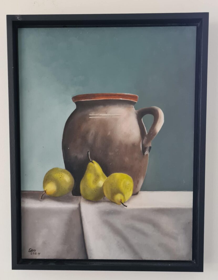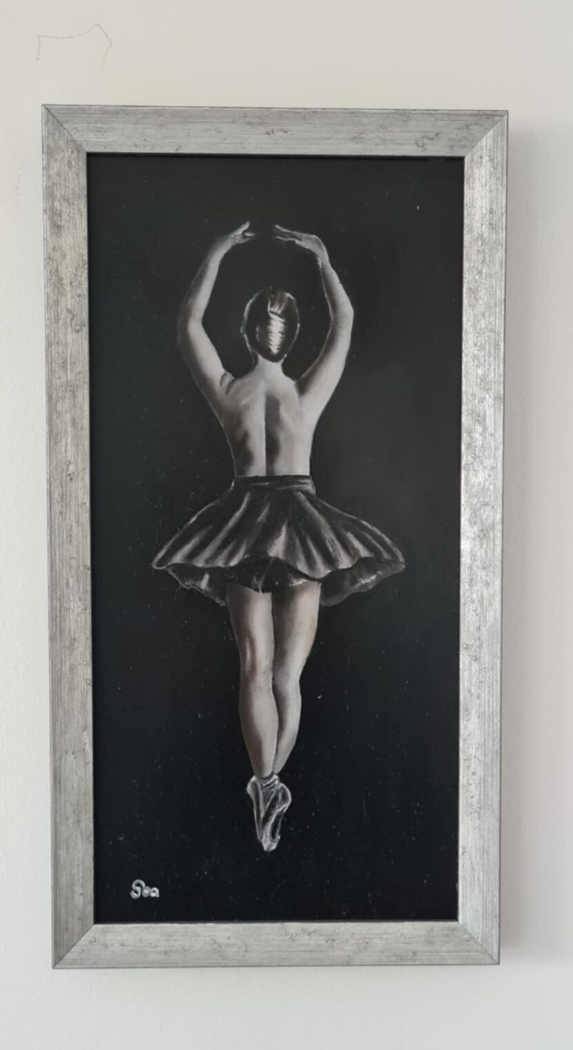 olie verf geschilderde ballerina in zilvergrijze lijst 23 x 42 195 euro