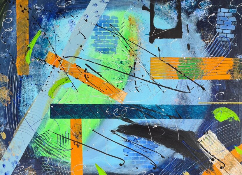 blauw tinten blauwe abstract schilderij 60 x 80 cm €175,00