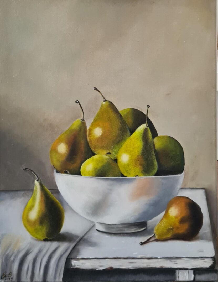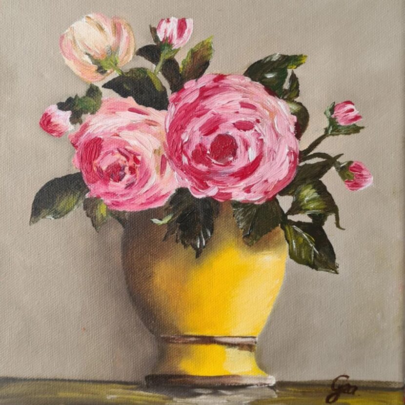 prachtig geschilderde tafereel van een oude theedoek in vergiet olieverf op paneel in baklijst 30 x 40. €185,00