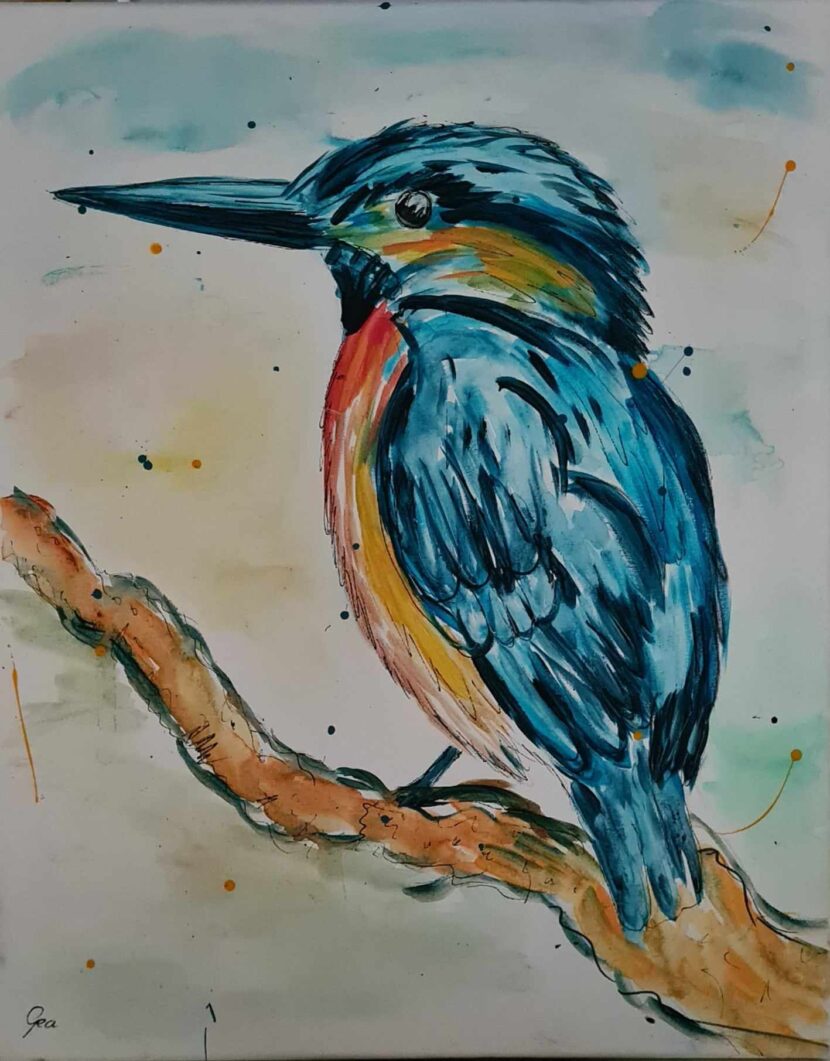 ijsvogel acryl geschilderd op doek 40 x 50. €85,00